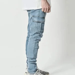 New Men’s High Street Slim Fit Stretch Jeans Fashion Multi Pocket Cargo Denim Pants Elastic Jogging Hip Hop Trousers Plus Size
