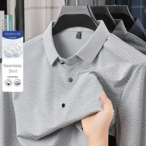 TFETTERS 2025 Spring Autumn Elegant Mulberry Silk Shirts for Man Long Sleeve Turn Down Collar Graphic Print Work Shirt for Male