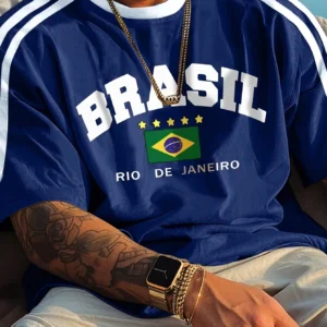 2025 Summer New Five-star Brasil Print T-shirt For Men Short Sleeve O-neck Tees Vintage Casual Sports Mesh Jersey Oversized Tops
