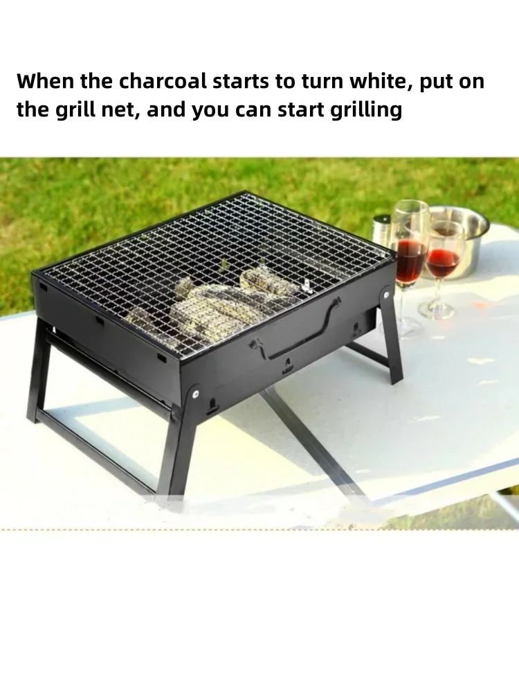 1Pcs Folding Portable Barbecue Charcoal Grill Stainless Steel Small Mini BBQ Tool Kits for Outdoor Cooking Camping Picnics Beach