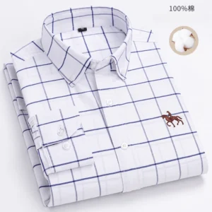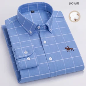 Men’s Long Sleeve S ~ 6XL Cotton Oxford Shirt Plaid Stripe Business Casual Men’s Pocket Regular Cut Button Down Men’s Shirt