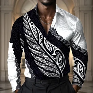 Men’s Retro Print Shirt Long Sleeve Lapel Single-Breasted Autumn Casual Comfortable Streetwear