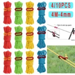 4/10pcs 4mm Outdoor Guy Lines Tent Cords Lightweight Camping Rope With Aluminum Guylines Adjuster Tensioner Pouch For Tent Tarp