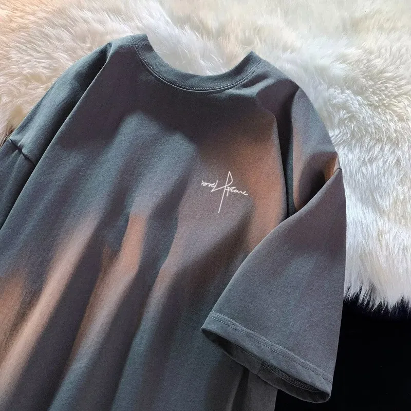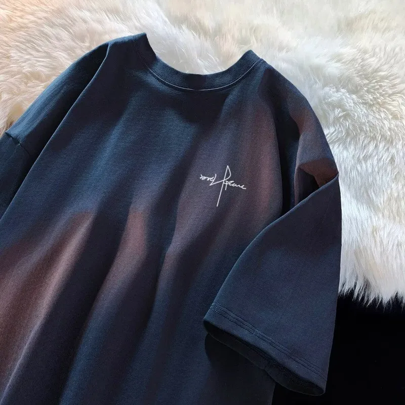8XL Men Oversized Fashion Loose American Vintage Letter NAET Print Short Sleeve Round Neck Versatile Trend Couple outfit $7.57 – $9.65