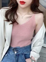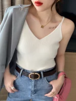 Be the first to review “Korea Summer Tops New Solid V-Neck Elastic Knitted Suspender Camis Women’s Tanks Clothing Basics Shirt” Cancel reply