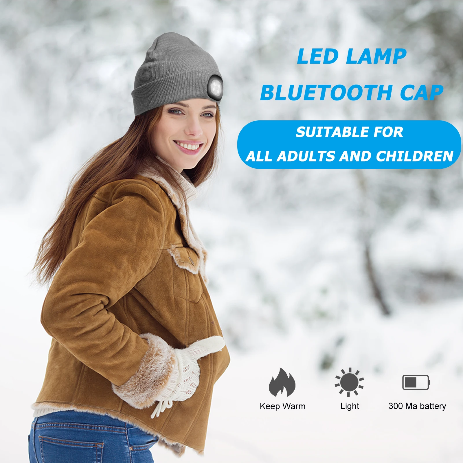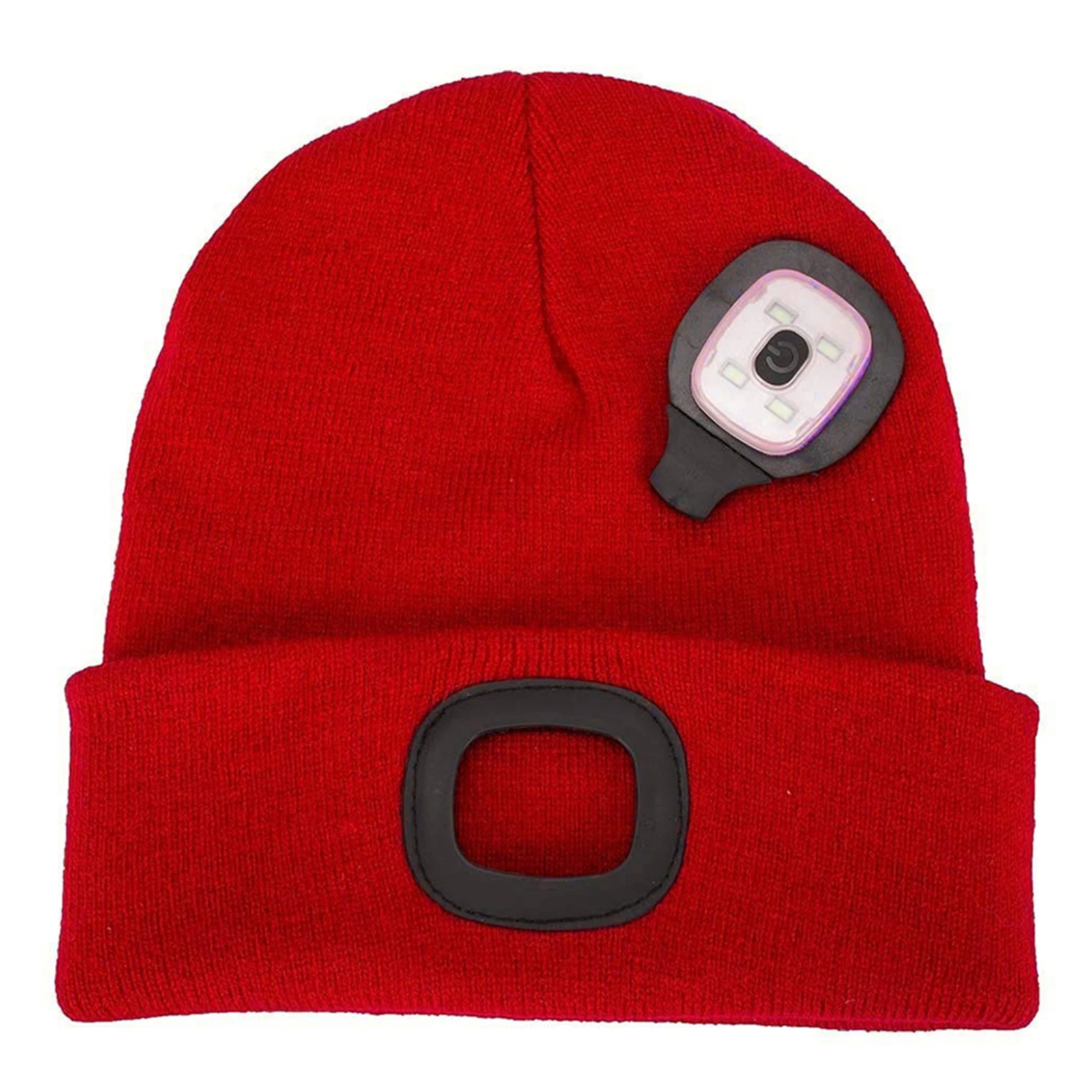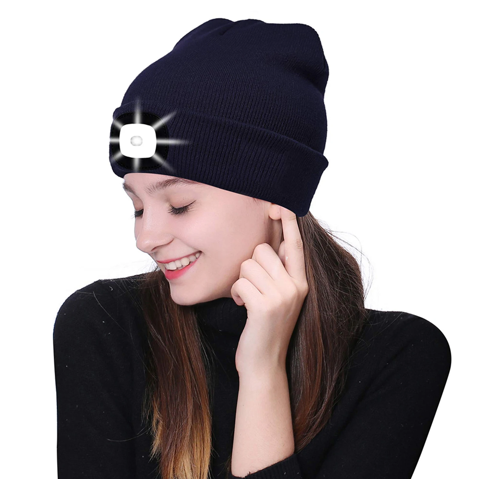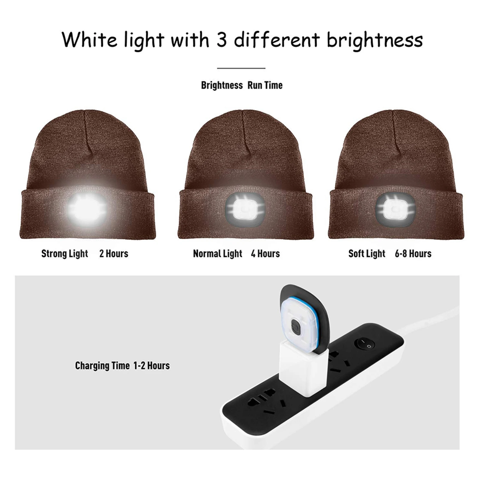 LED Beanie Hat with Light, Unisex USB Rechargeable Hands Free 4 LED Headlamp Cap, Warm Winter Knitted Night Lighted Hat for Hunting Camping Jogging Walking