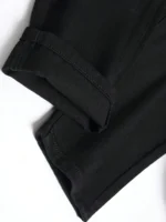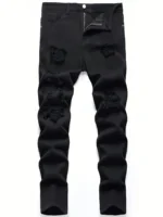 Home man jeans pants Men’s slim fit perforated black denim pants