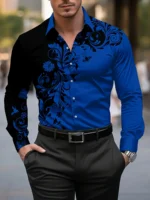 Home mens Shirts Men’S Stylish Red Floral Print Dress Shirt – Casual Long Sleeve Button-Up Design Spring Fashion Shirt Floral Print Shirt