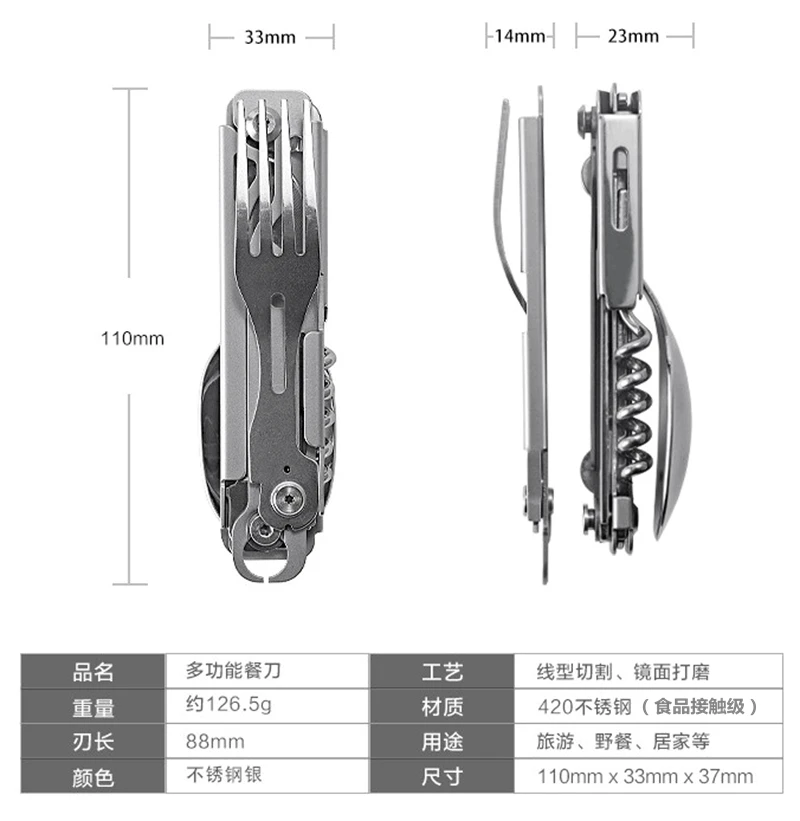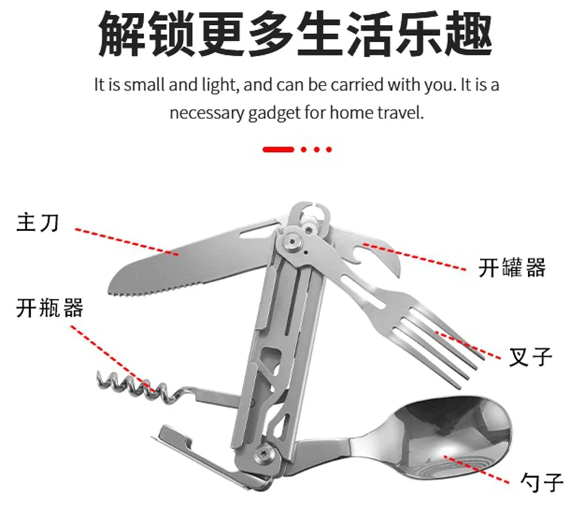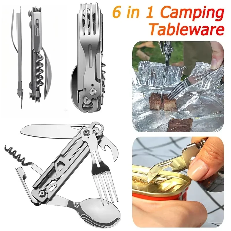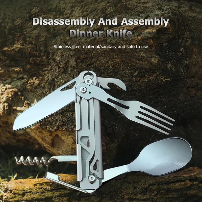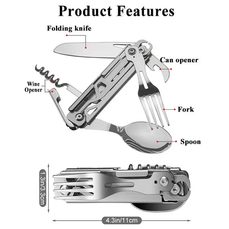 Be the first to review “Multifunctional Cutlery Set Portable Folding Camping Tableware Stainless Steel Knife Fork Spoon Can Opener Outdoor Equipment” Cancel reply