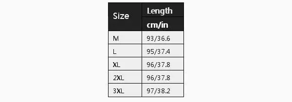 | Size::3XL | Length(cm/in)::98/38.6 | Waist(cm/in)::78/30.7 | Hip(cm/in)::100/39.4 |