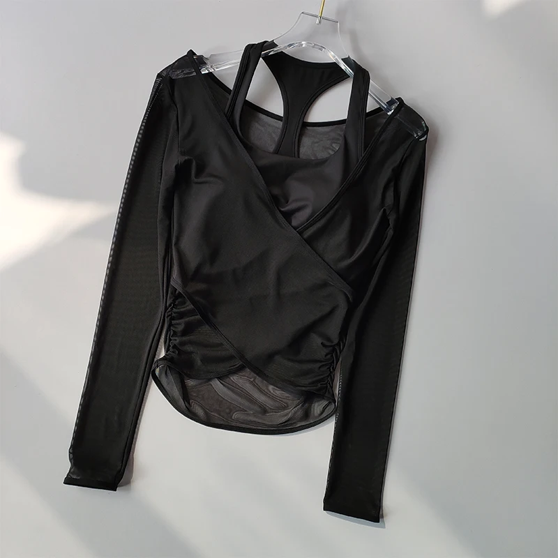 Be the first to review “Sexy Mesh Slimming Yoga Suit for Women Gathering Together Sports Bra Fake Two Pieces of Quick Drying Training Pilates Cover Up” Cancel reply