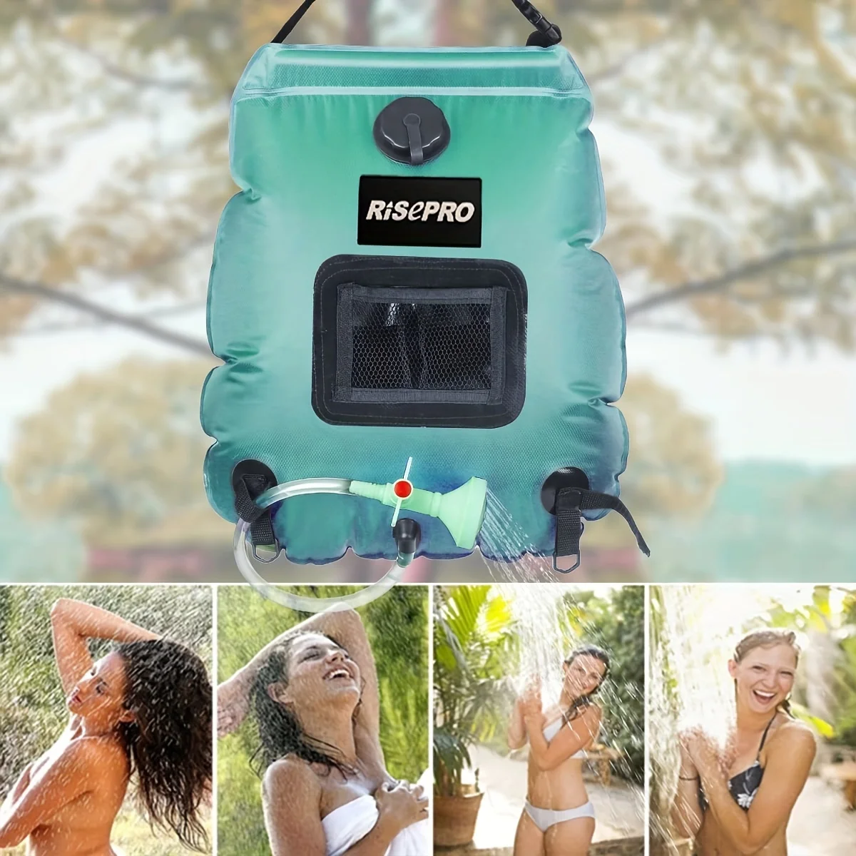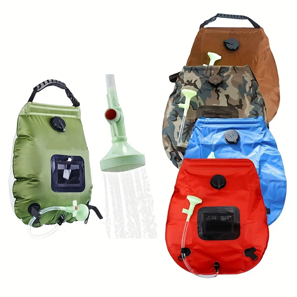 20L Foldable Solar Shower Bag Outdoor Bath Water Bag Camping Sun Heated Water Shower Bags Scrubbing Removable Hose Shower Head $65.61