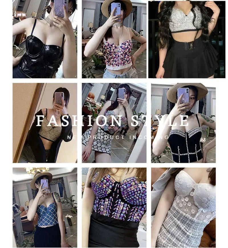 Home woman top Summer High End Tops Women Corset Luxury Bling Diamond Sequined y2k Tank Woman Clothes Quality Push Up Bustier Ladies Crop Top