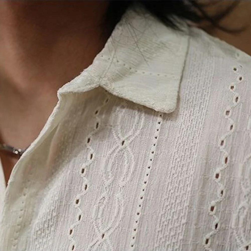 * Item Features:Men,Loose Hollow Out Short Sleeve Shirts,Retro Fashion Solid All-match Tops