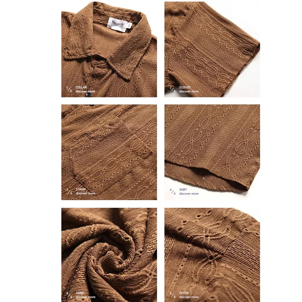 Home mens Shirts Summer New Men Casual Loose Hollow Out Short Sleeve Shirts Pockets Retro Fashion Vacation Daily All-Match Male Tops