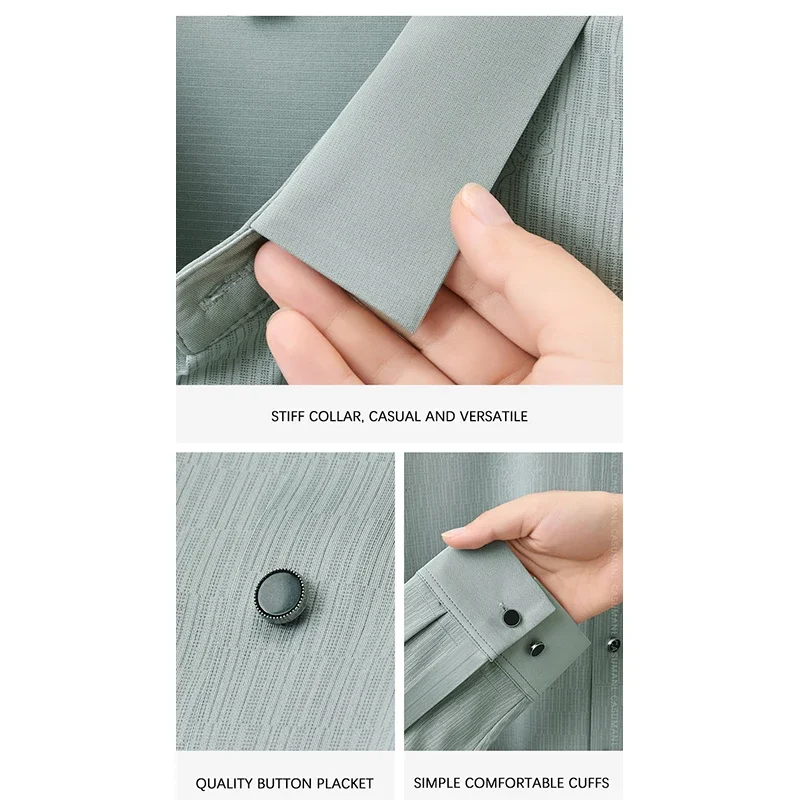 Home mens Shirts TFETTERS 2025 Spring Autumn Elegant Men’s Silk Dress Shirt Long Sleeve Slim Fit Anti-wrinkle Square Collar Party Shirt Man