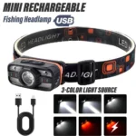 USB Rechargeable LED Headlamp Portable Light with Built in Battery 6 Lighting Modes Fishing Head Torch Outdoor Camping Lantern