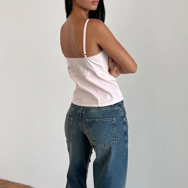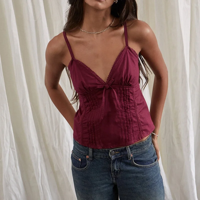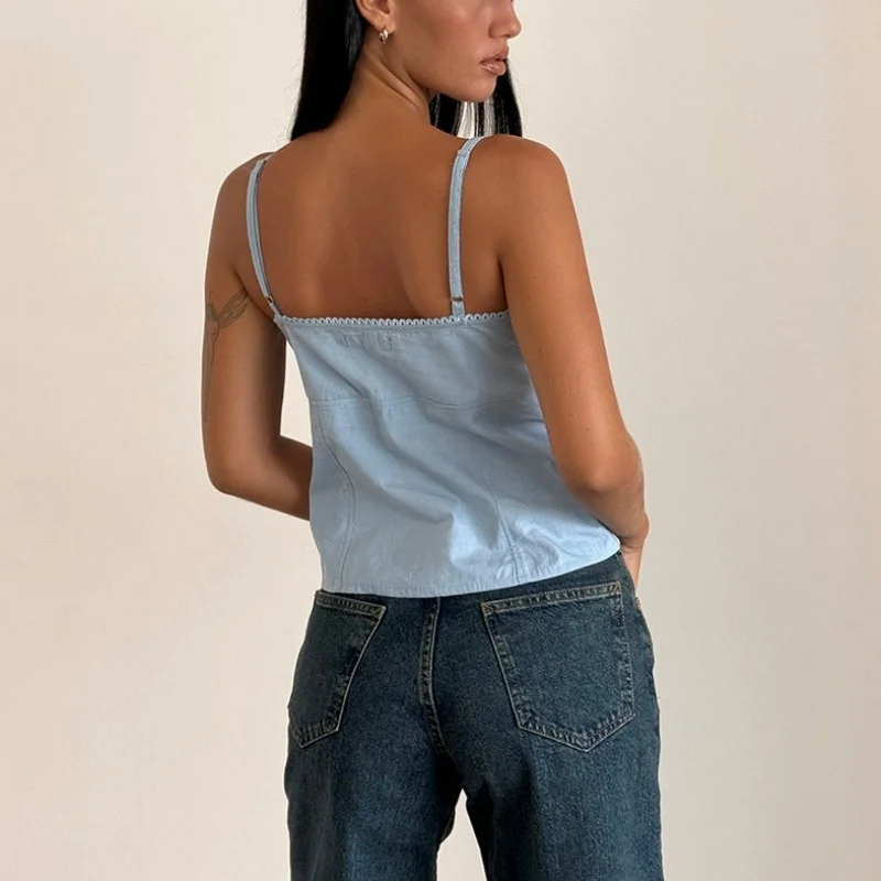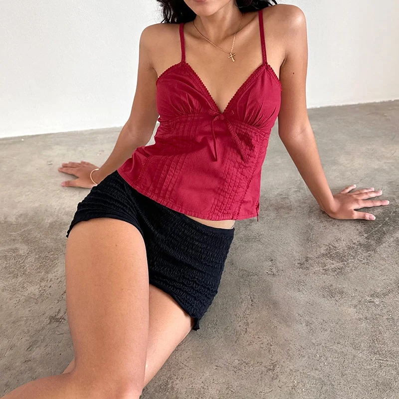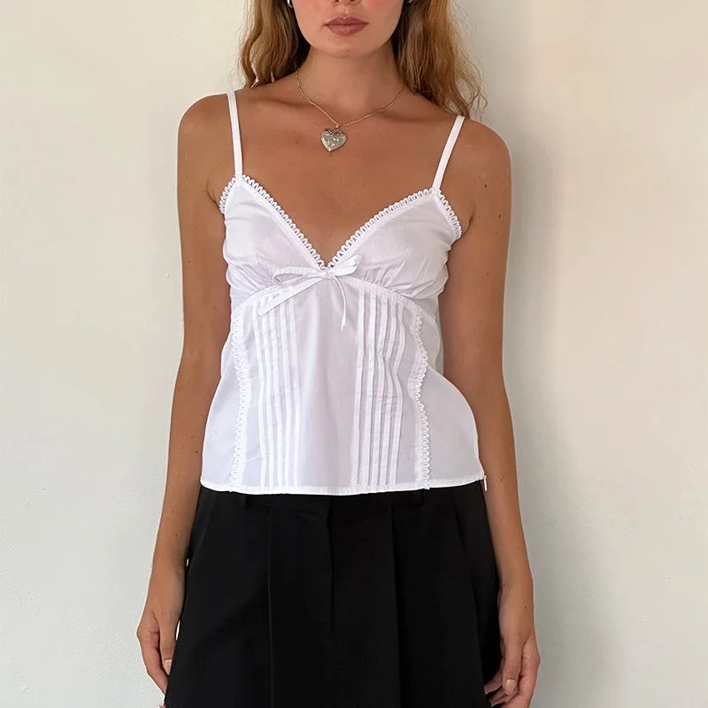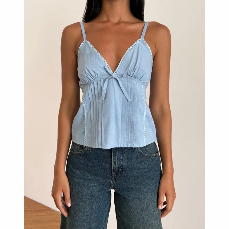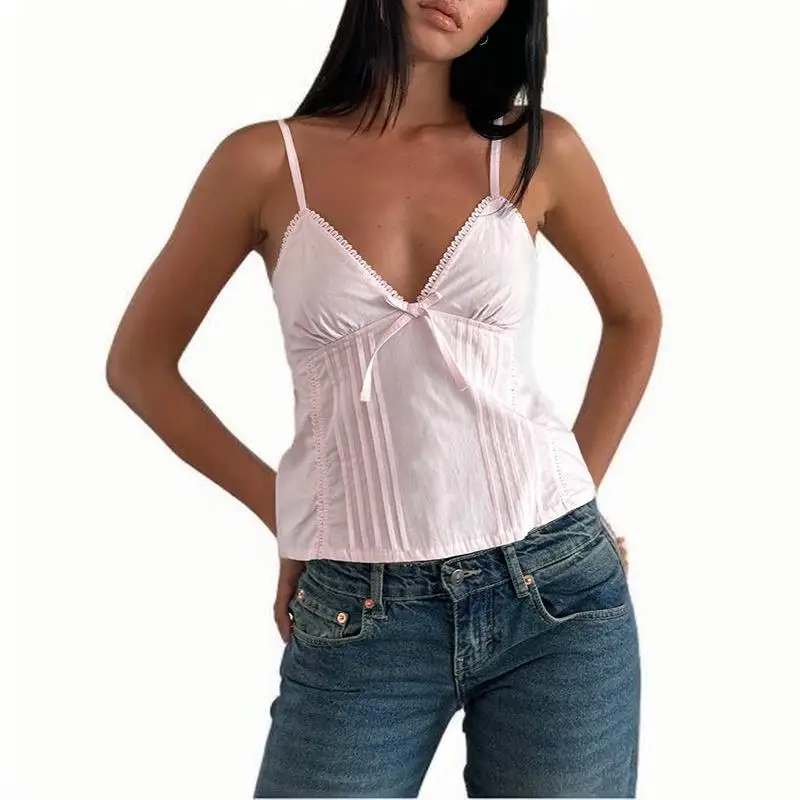 Home woman top Xingqing y2k Tank Tops Women Summer Bow Lace Trim V Neck Spaghetti Strap Sleeveless Camisole Vest 2000s Clothing Streetwear
