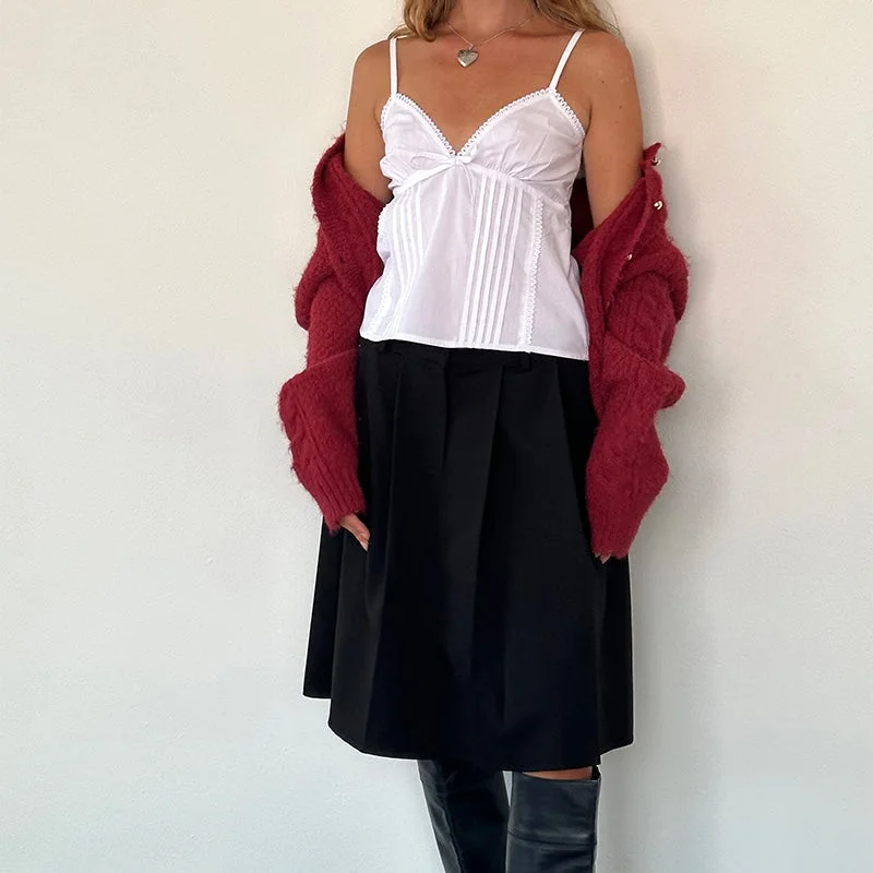 New Knitted Crop Top For Women Solid Color Lace Sling Tops Knitwear Tank Top Female Sexy Slim Camisole Sweet Short Beau Back Top