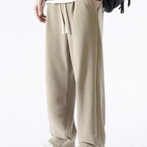 Winter Men’s Sweatpants Korean Fashion Thick Warm Fleece Wide Leg Straight Loose Track Pants Male Casual Thermal Velvet Trousers