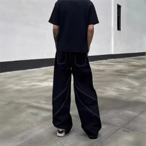 Y2K Vintage Patchwork Baggy Wide Leg Jeans Washed Loose Fit Denim Streetwear Pants for Men Women, Retro Casual Style Baggy Jeans